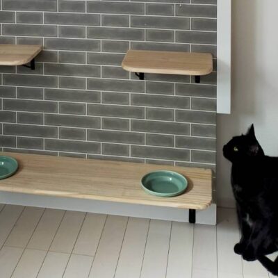 食事中に器が動いてしまう問題を、壁面固定で解消。 猫の体格や食べ方に合わせて高さを...